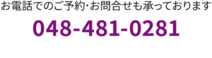 お気軽にお問い合わせください。048-481-0281受付時間 10:00~19:00 [ 定休日:水曜 &第2・第4火曜]